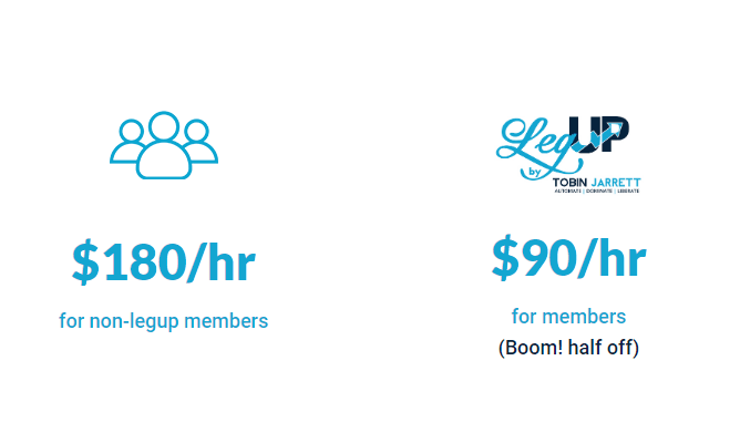 A: Good question - the special members-only $90/hr rate is for work that the Tobin Jarrett team handles...which is the vast majority of work we do! If, however, you request or require work done personally by Tobin Jarrett, himself, the rate is $180 per hour. This is for things like 1-on-1 consulting or coaching from Tobin, copy editing, campaign optimizations, etc.