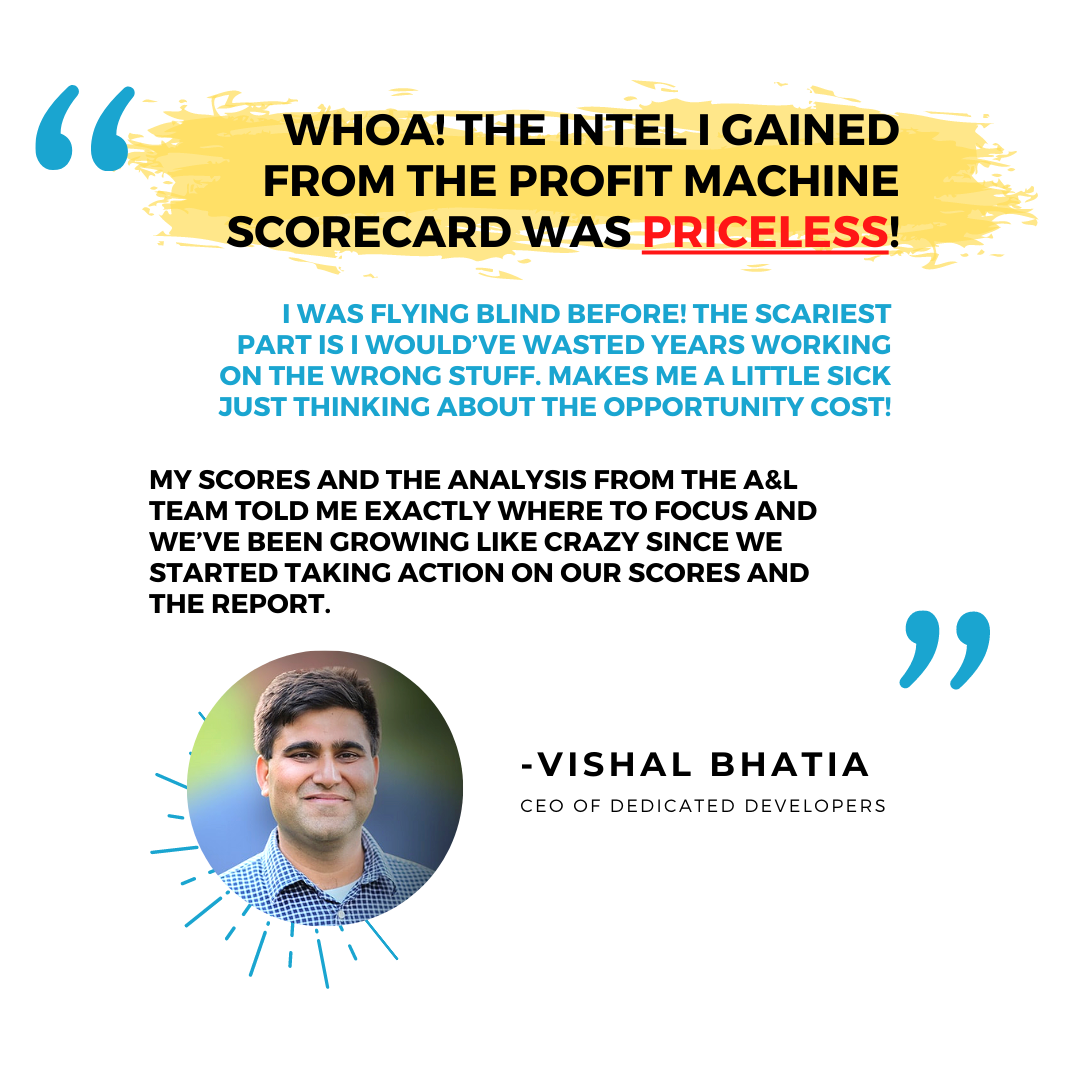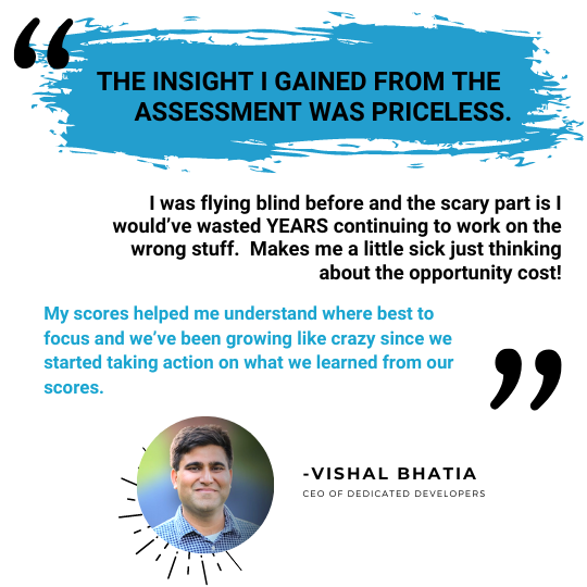 The Revenue Machine Scorecard results will tell you where your business is weakest, so you can stop with the guesswork and finally bring the full power of your attention and time to fixing the problems!